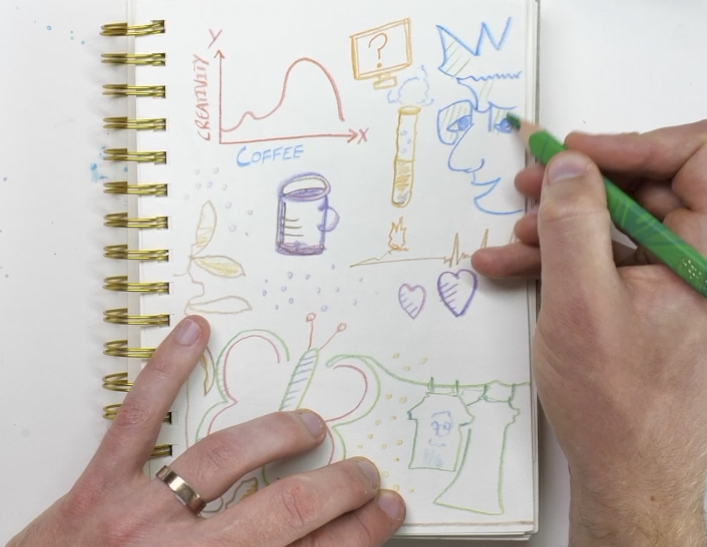 Here you can use a website like - https://randomwordgenerator.com/ - to pick a random word and sketch and doodle your ideas around it.