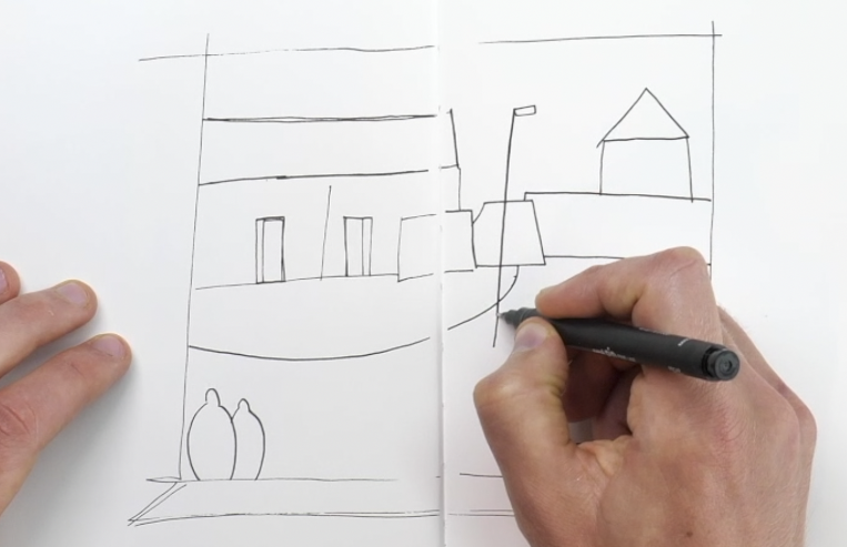 This is one of my favourite things to do - find a scene, a dull scene, an everyday scene, and draw it.