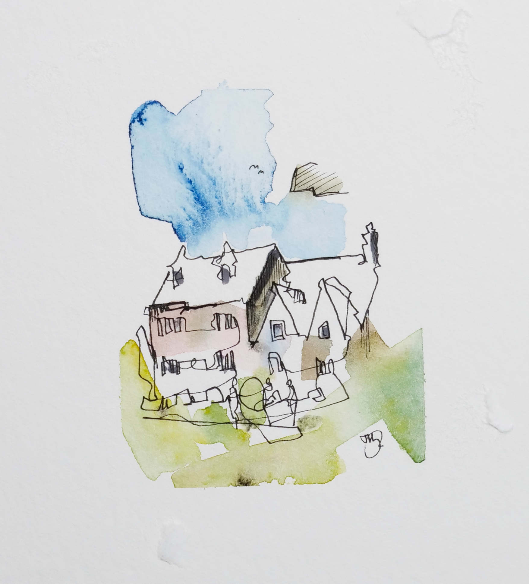 Let’s say you want to sketch a bright, sunlit village like the one below...