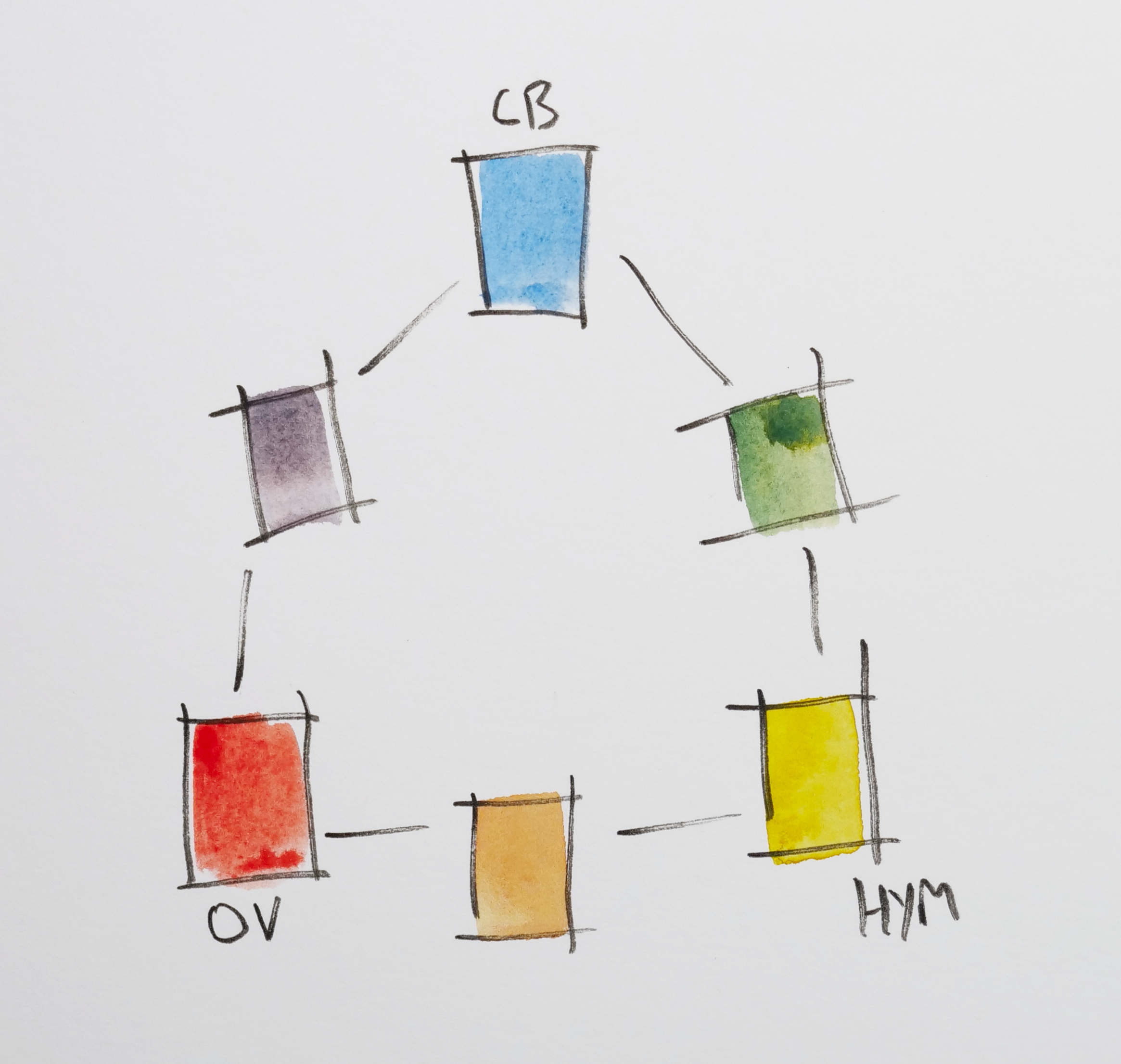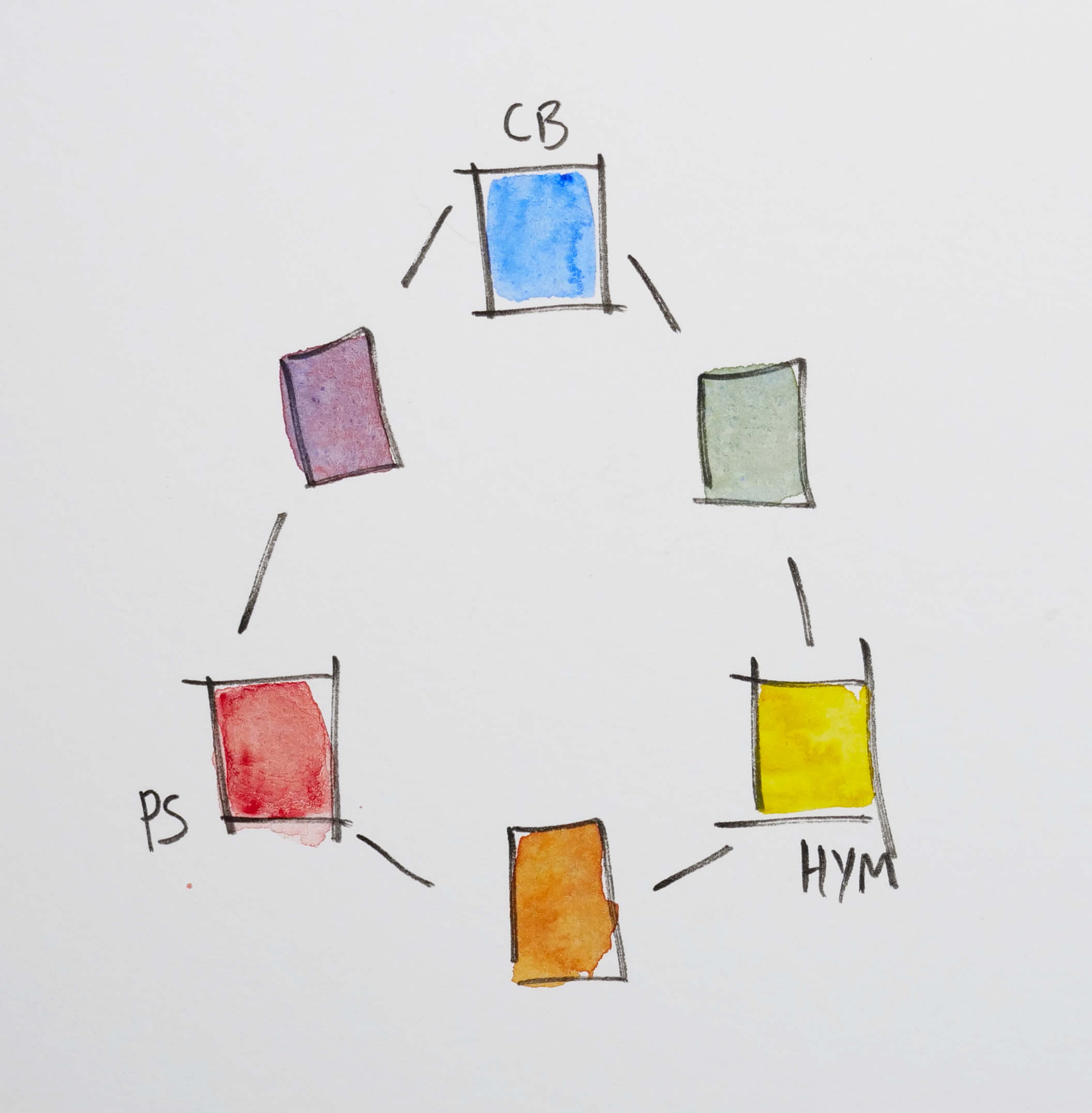And instead of mixing the secondary colours, you use pigments from your pans as those secondaries.