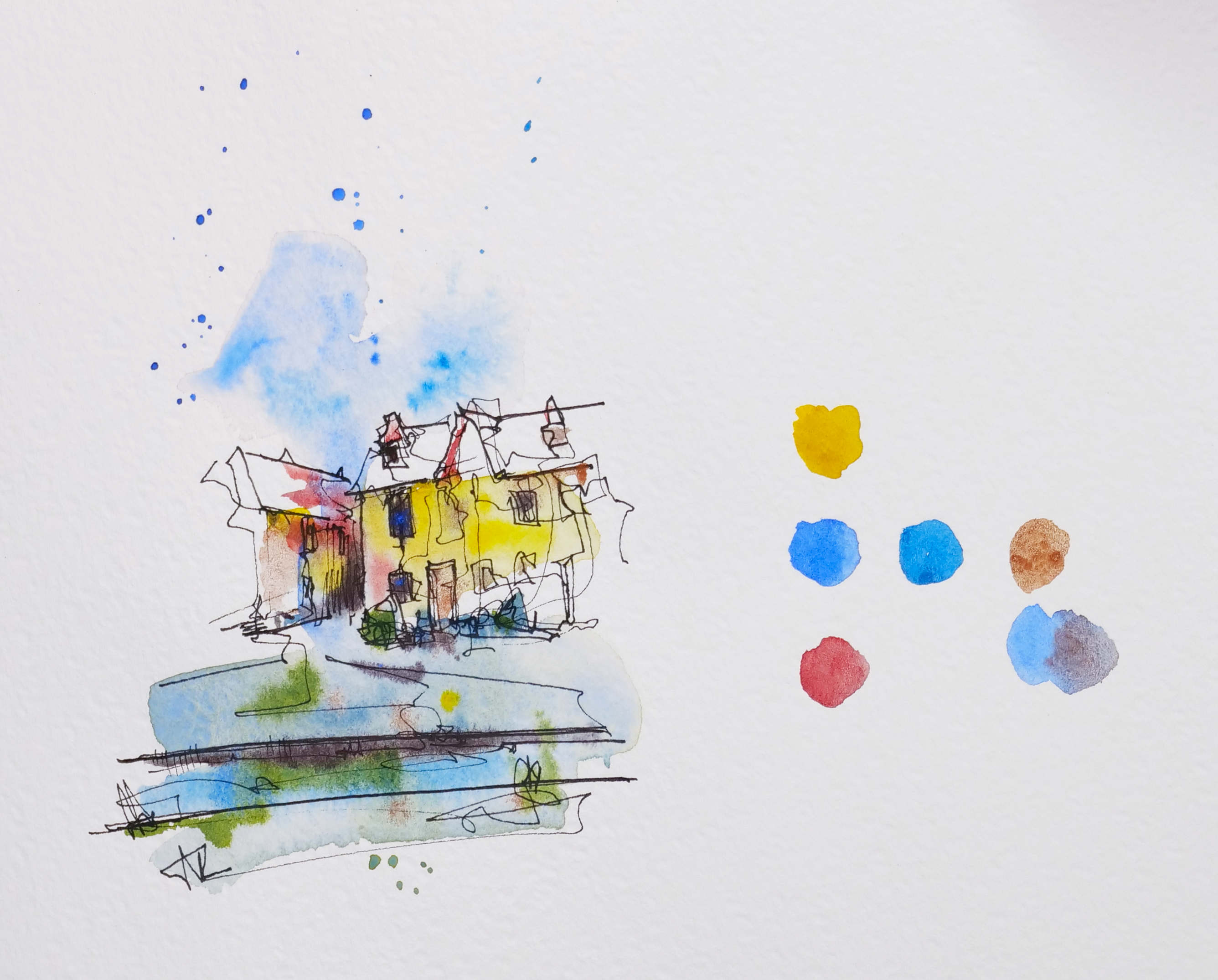 Your palette—with its blend of primaries, earth tones, and granulating pigments—offers a huge range of expressive potential. Whether you’re working intuitively or planning a scene around a complementary scheme, your understanding of colour relationships is the key to sketches that feel intentional, harmonious, and full of life.