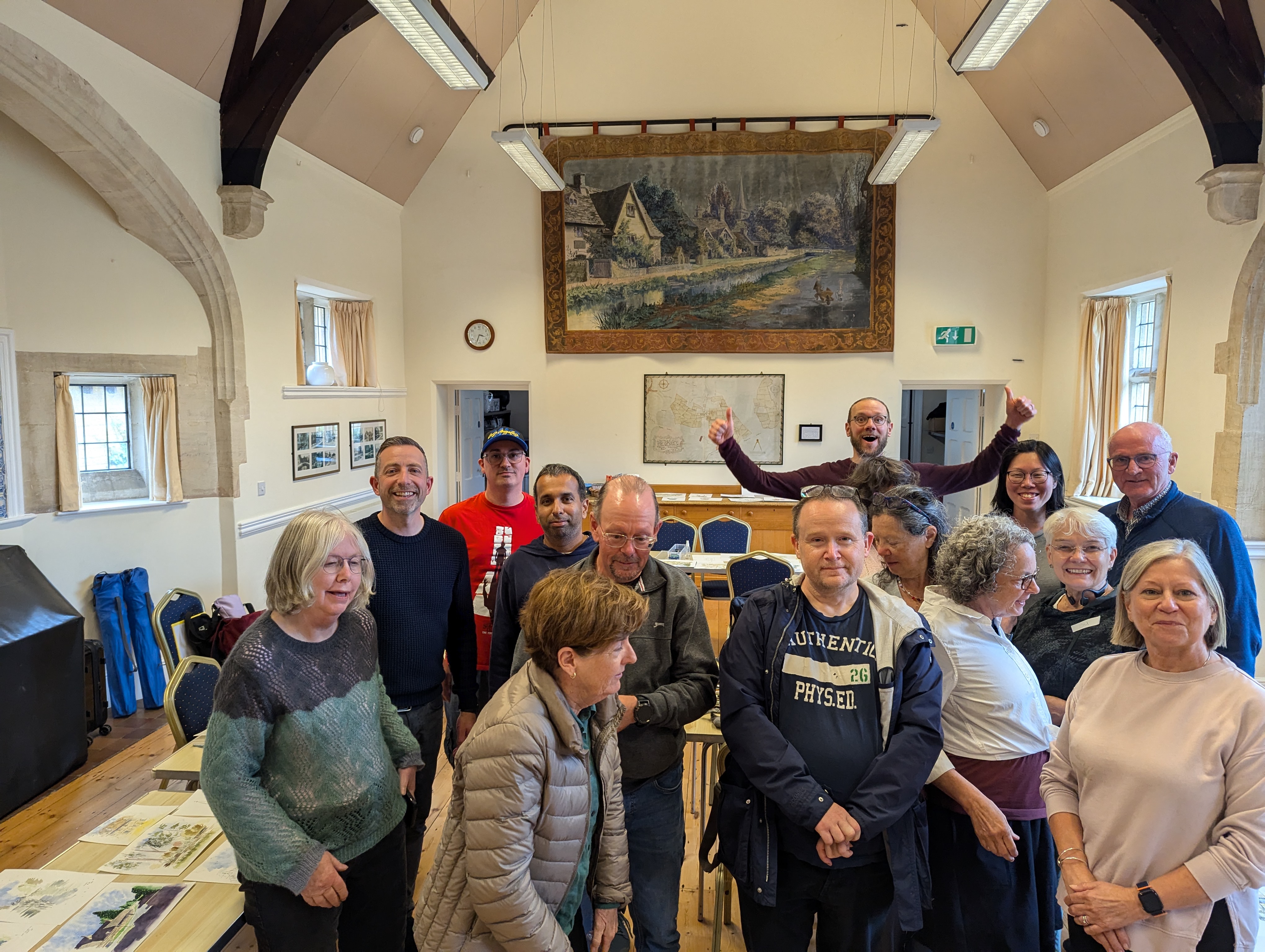 After a quick drive back to our base camp, a supermarket dash, and a nap, we were up at the crack of dawn. Our mission? Setting up the charming Lower Slaughter village hall for an epic weekend of sketching.