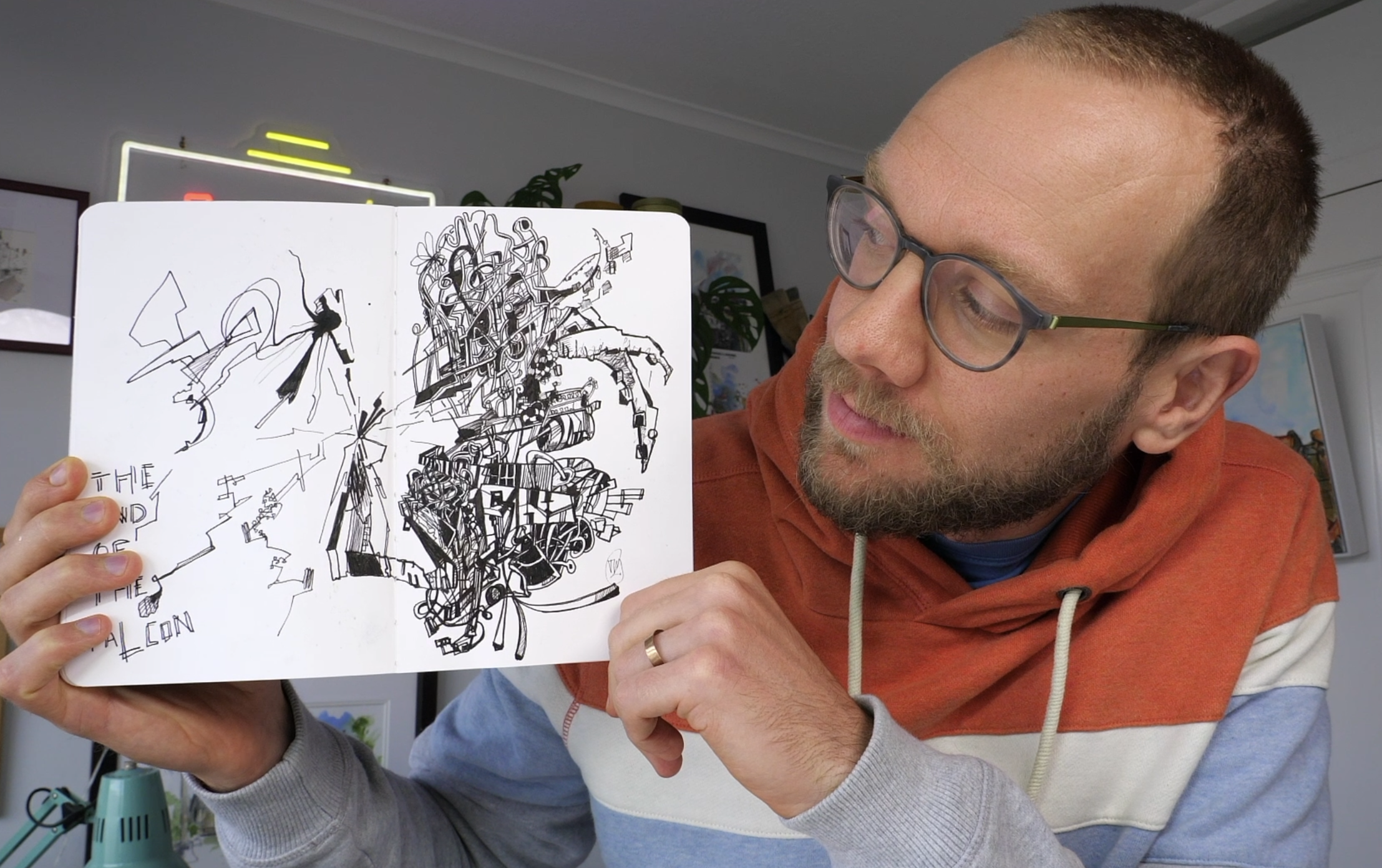 Takje this for example... I called it 'The End of the Falcon' because, as I started drawing, I felt like the outline of the Millenium Falcon appeared and then exploded on the page.