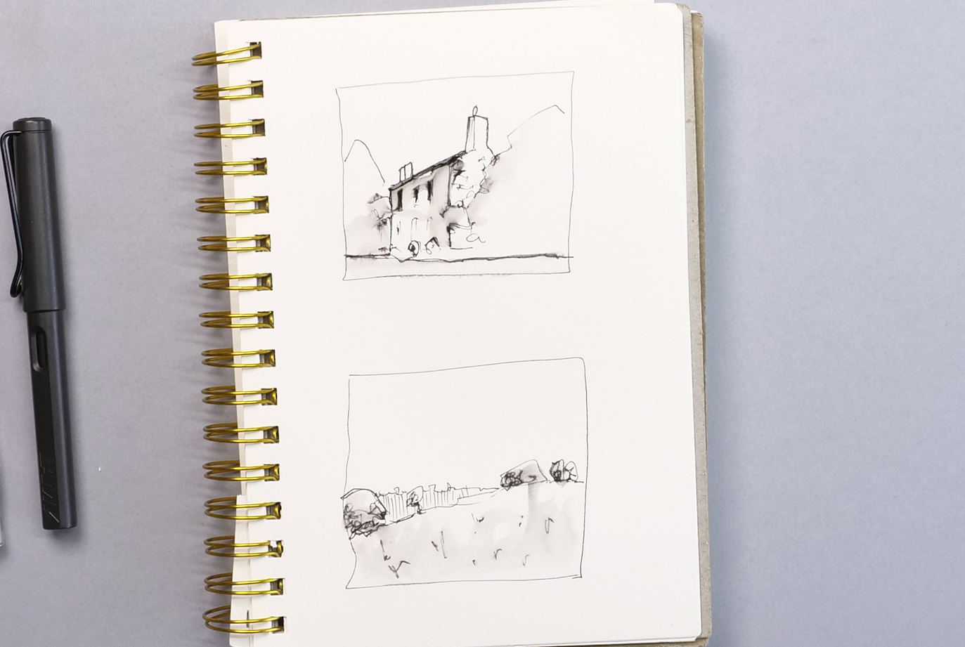 For sketching, the LAMY safari is a long-standing favourite pen – it’s relatively cheap, well balanced and well made. I prefer the extra fine or fine nib. And the ink cartridges that come with it work well for soluble ink sketching (see the projects below).