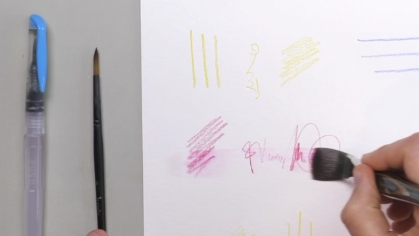 We can paint directly from the pencil, lifting pigment and adding it to the page with our brush - in the first image below I'm picking up pigment from my pencil, and in the second I've used just my brush to paint.
