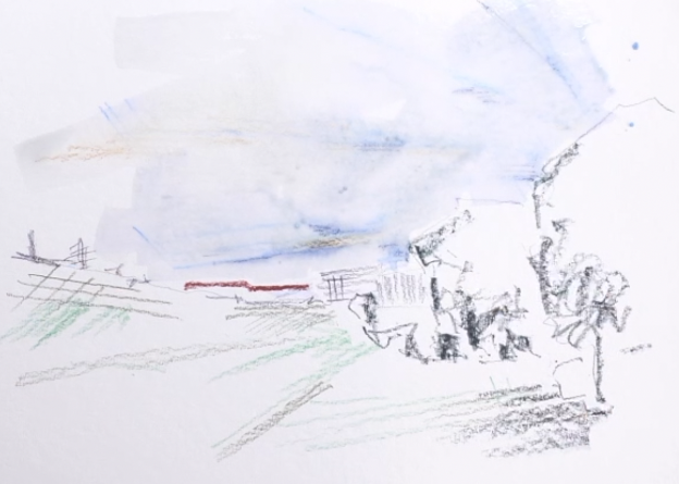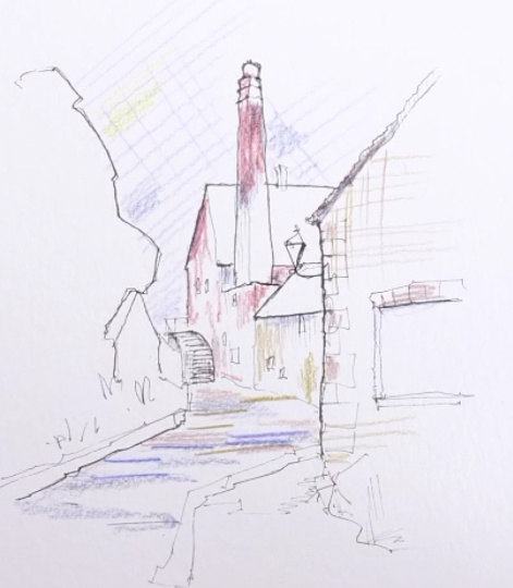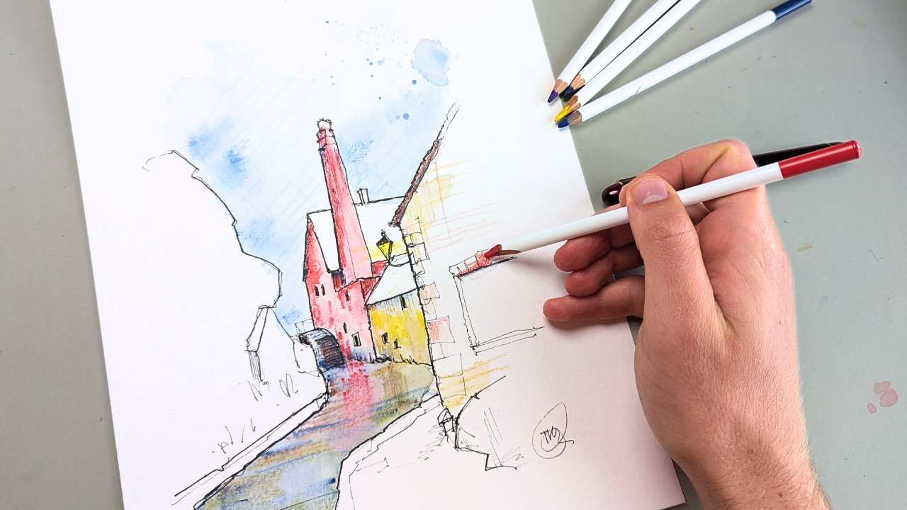 This way of thinking means that we avoid heavy and claggy sketches, instead we get a transparent, suggestive and beautiful watercolor sketch that we are so used to.