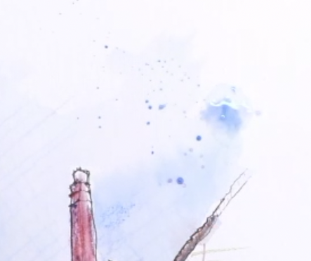 We can even create flicks and splatters (I think this is even easier than with watercolour pencils) like in the sky of this scene.
