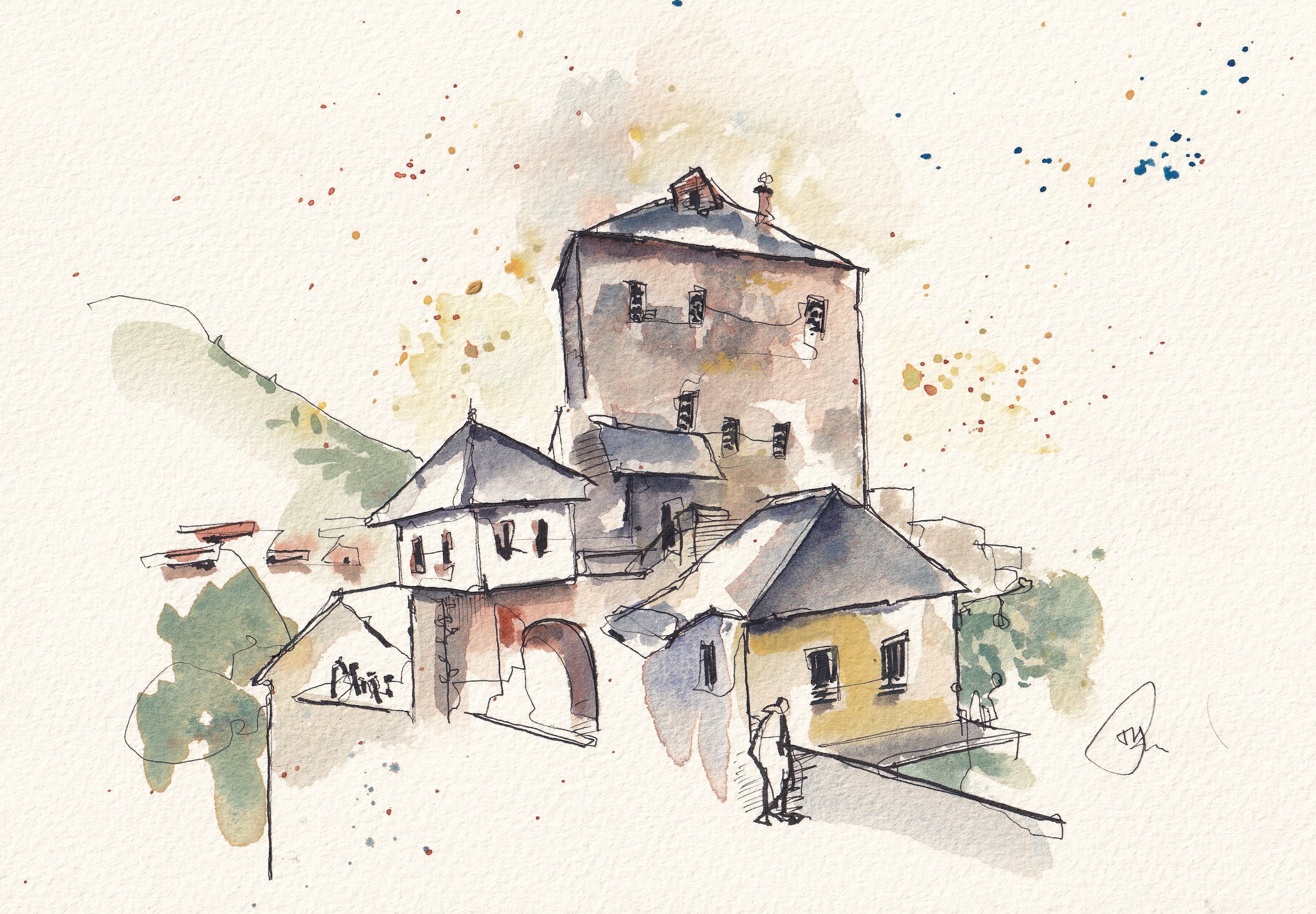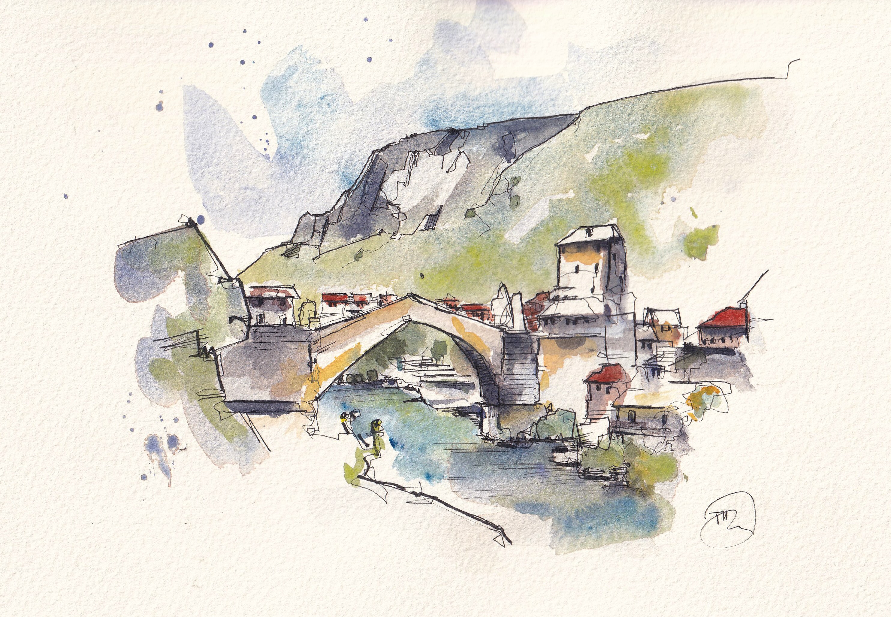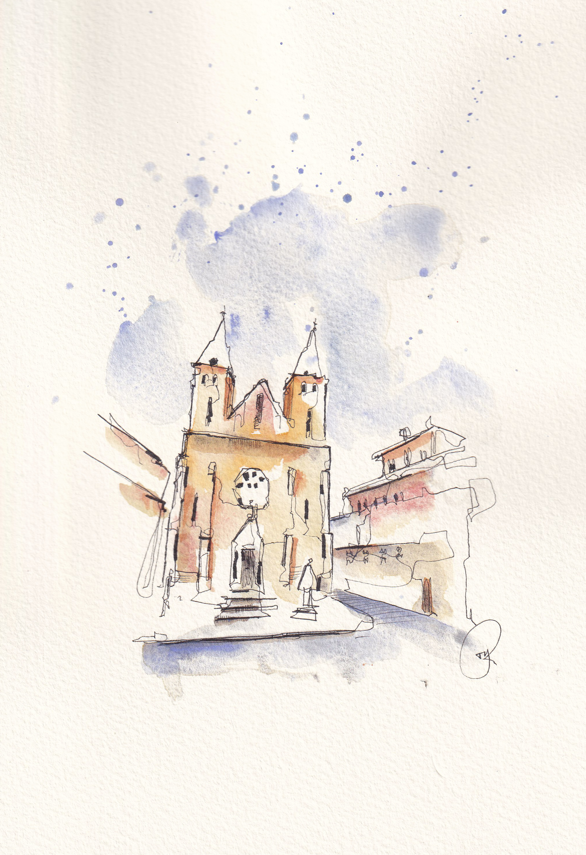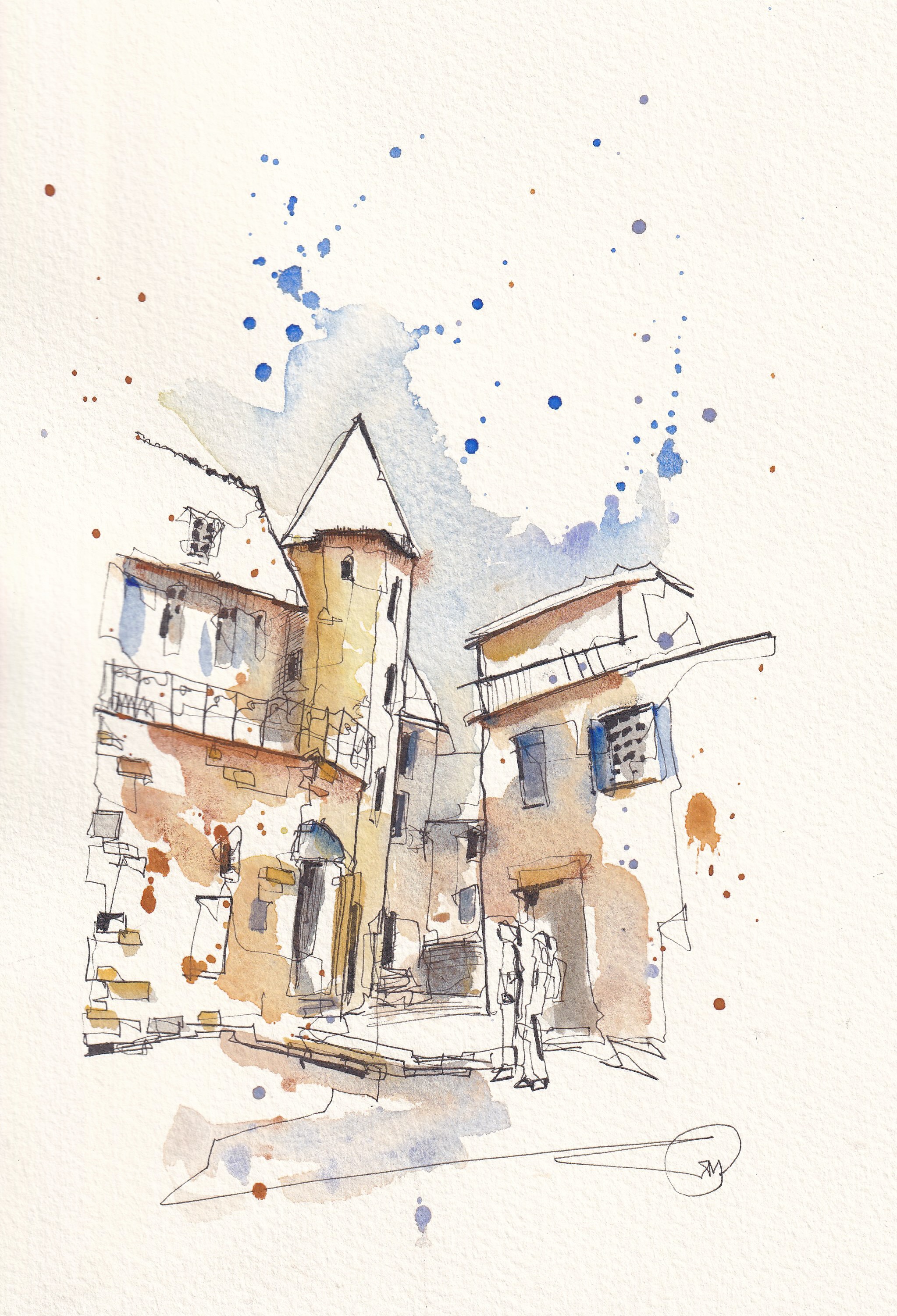 In this workshop we are going to look closely at splatters and how the randomness of a good splatter can pull a whole scene together. You will also see that there is more control in splattering than you might think, and that this control can make a sketch feel lively and connected. I use this technique all the time in my skies, but here we will push it across the whole scene.